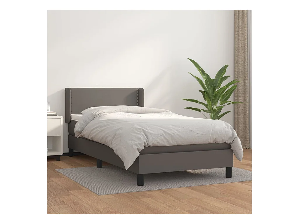 Ensemble complet boxspring - 90x190 cm + sommier tapissier + matelas Gris Similicuir SRGW11344