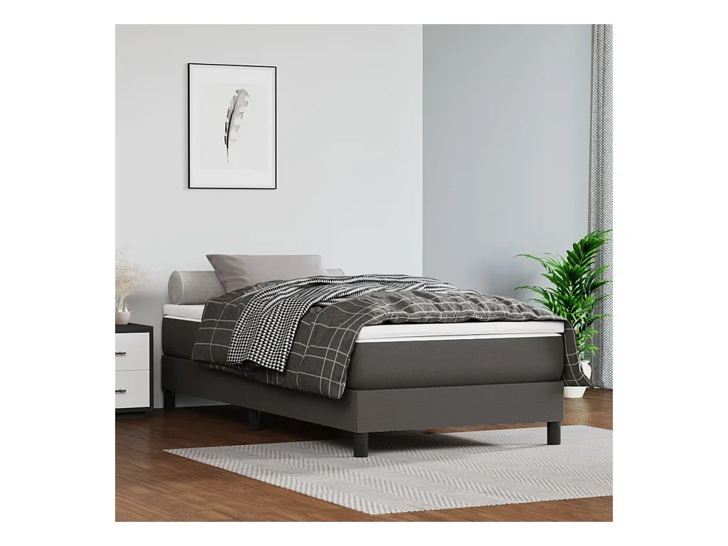 Ensemble complet boxspring - 90x190 cm + sommier tapissier + matelas Gris Similicuir SRGW29257