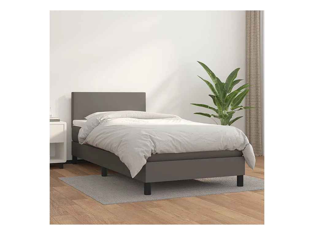 Ensemble complet boxspring - 90x190 cm + sommier tapissier + matelas Gris Similicuir SRGW63151