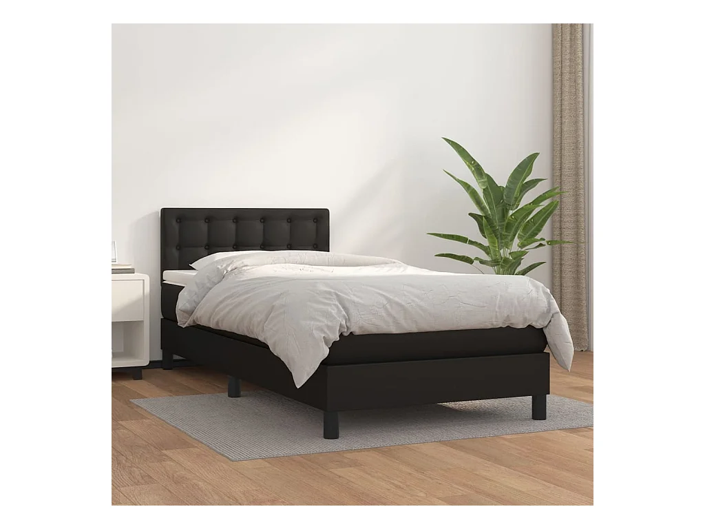 Ensemble complet boxspring - 90x190 cm + sommier tapissier + matelas Noir Similicuir SRGW80300