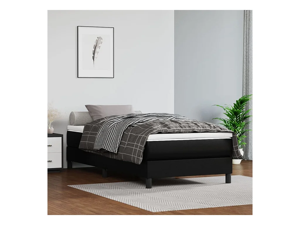 Ensemble complet boxspring - 90x190 cm + sommier tapissier + matelas Noir Similicuir SRGW89124