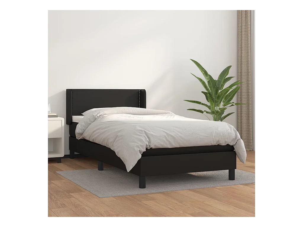 Ensemble complet boxspring - 90x190 cm + sommier tapissier + matelas Noir Similicuir SRGW89124