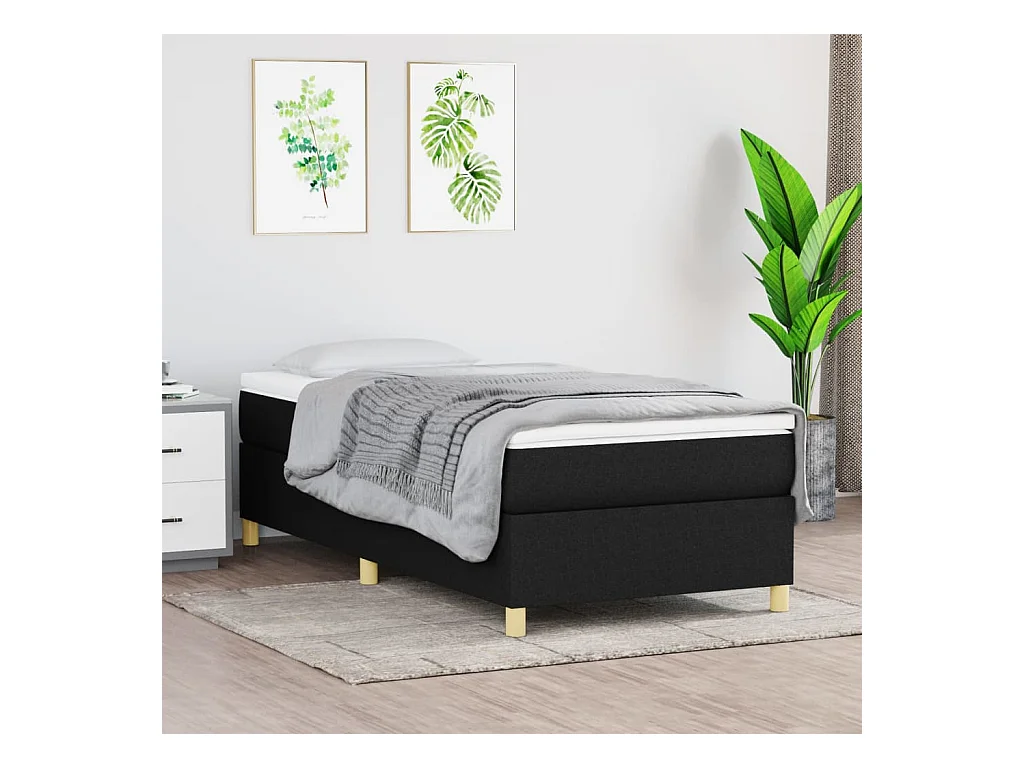 Ensemble complet boxspring - 90x190 cm + sommier tapissier + matelas Noir Tissu SRGW30079