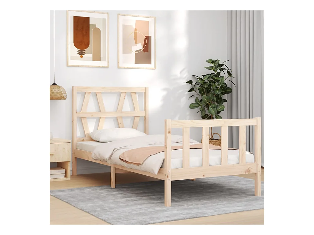 Lit-90x190 cm avec tête de lit simple bois massif EGGB40425