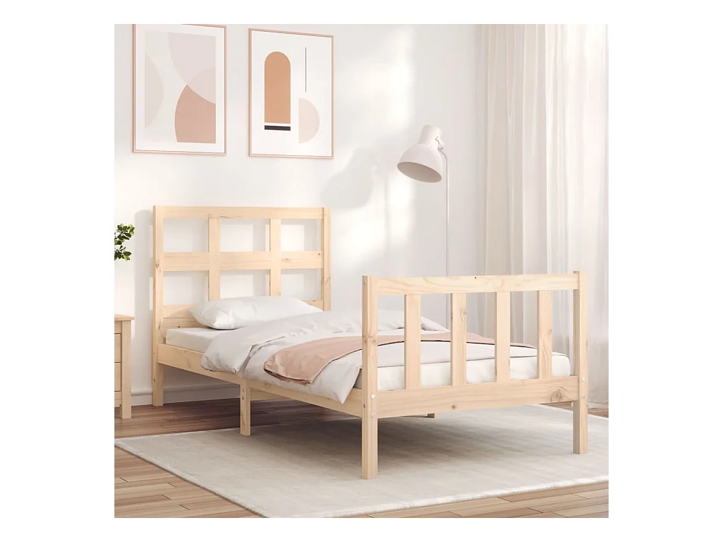 Lit-90x190 cm avec tête de lit simple bois massif EGGB43798