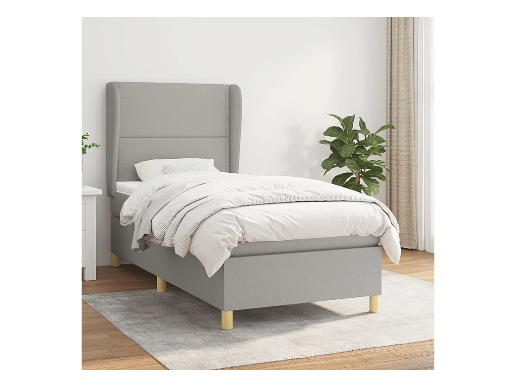 Ensemble complet boxspring - 90x190 cm + Sommier à lattes de lit + matelas Gris clair Tissu FR58067