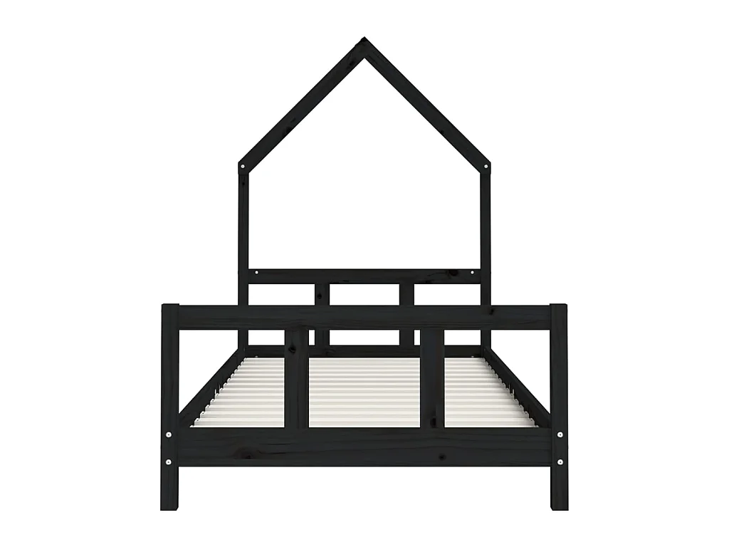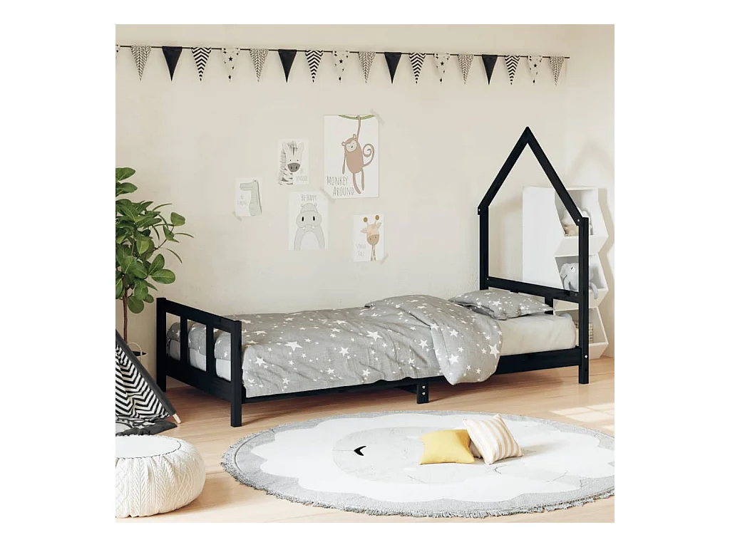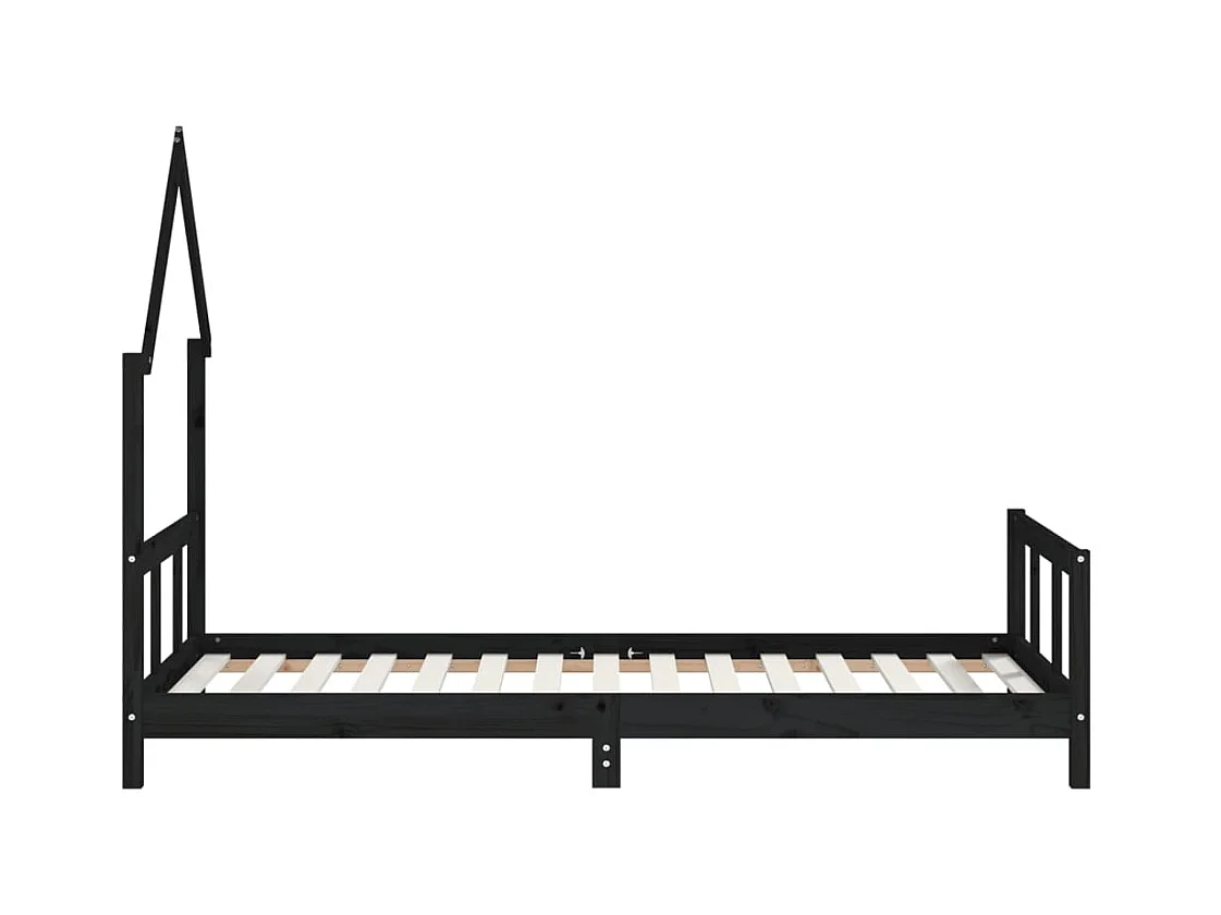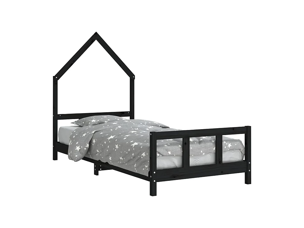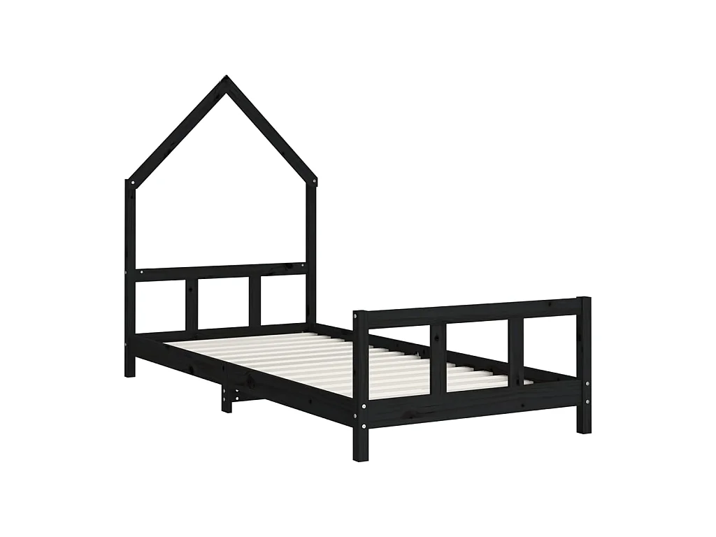 Lit-90x190 cm pour enfants noir bois de pin massif EGGB40131