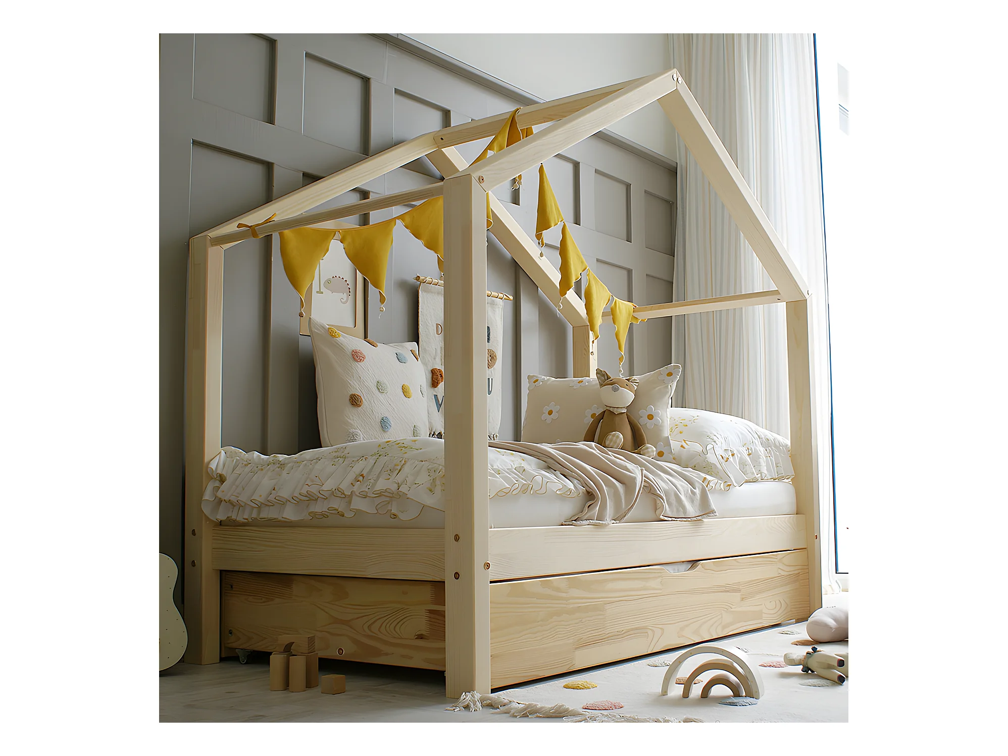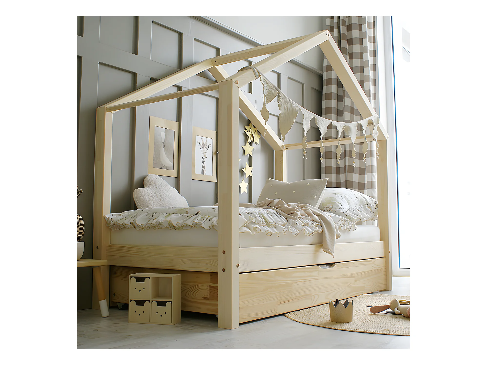 Lit cabane 90x190 sommier et tiroir inclus Susan Bois