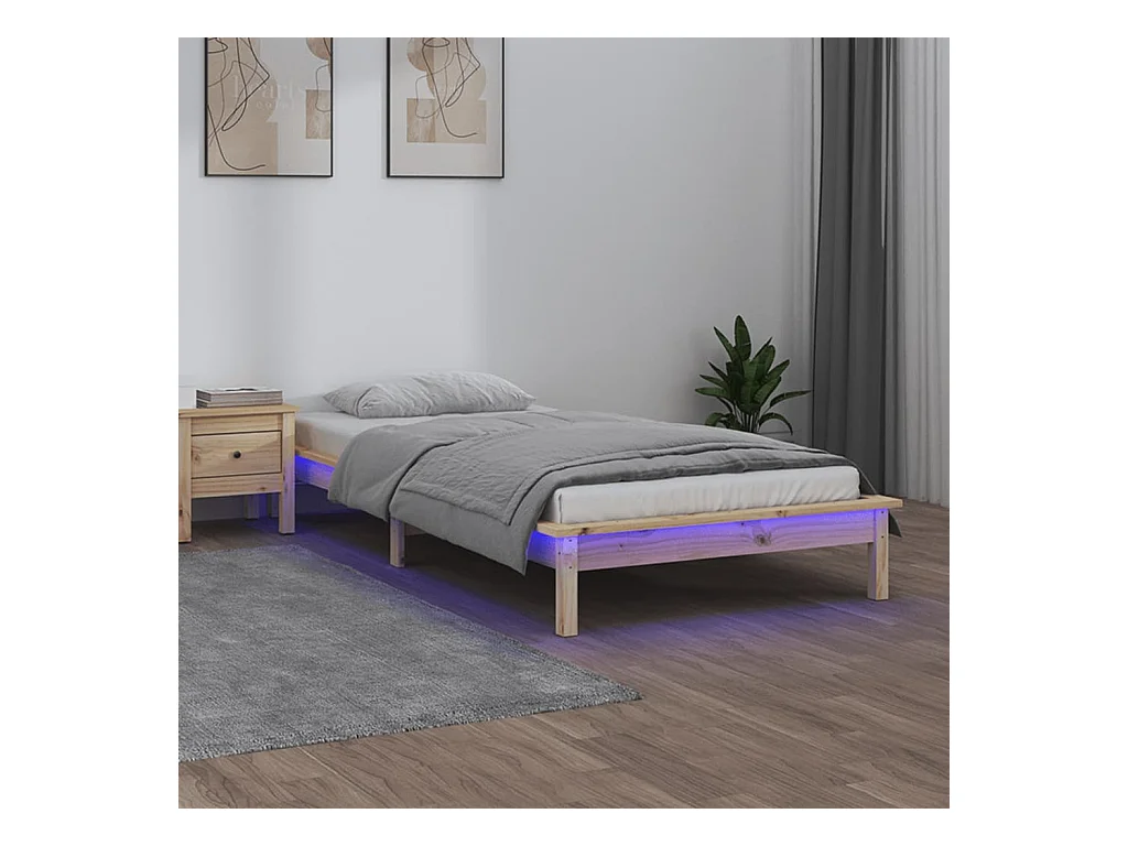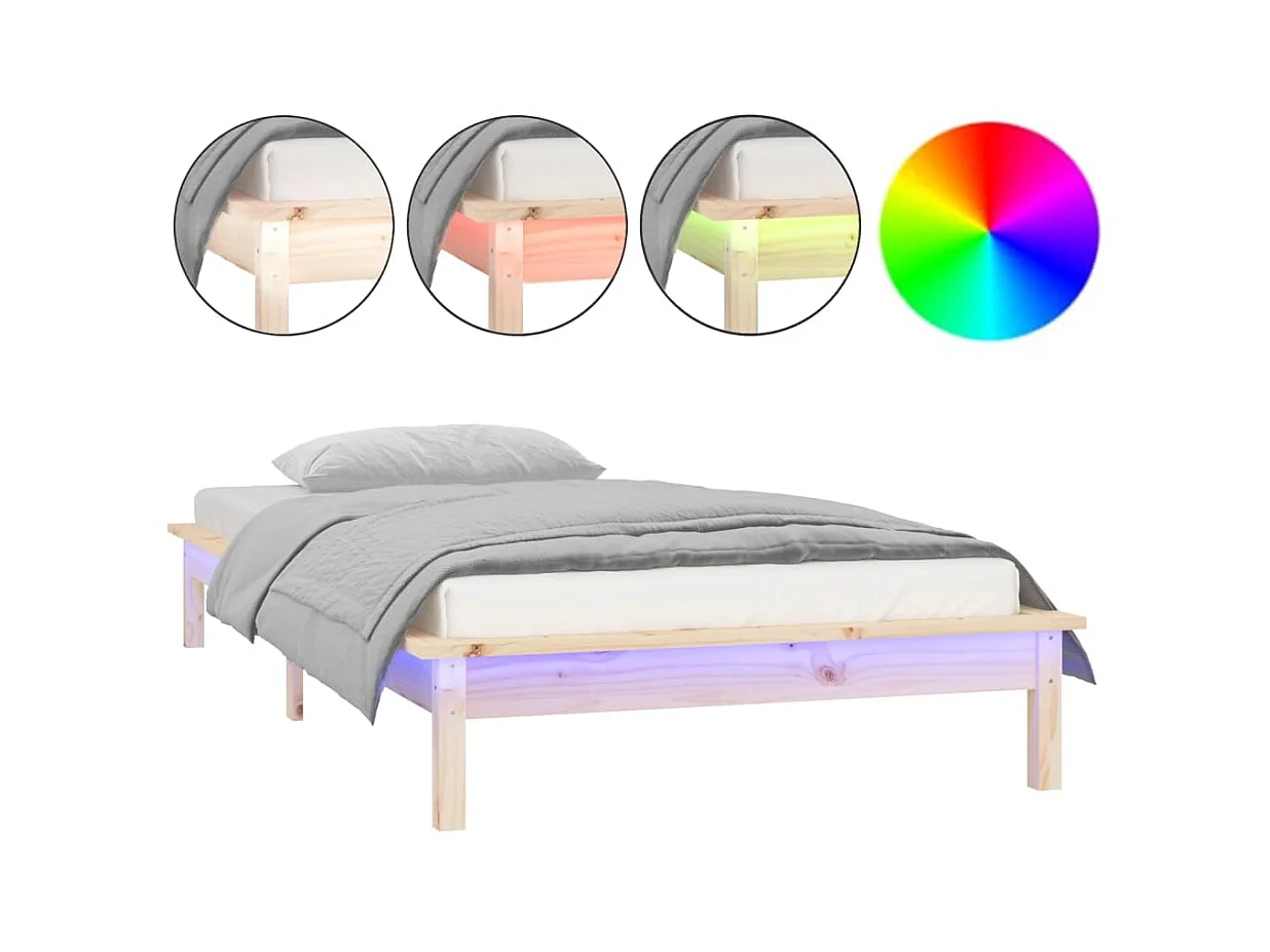 Lit-90x200 cm à LED Bois massif EGGB77089