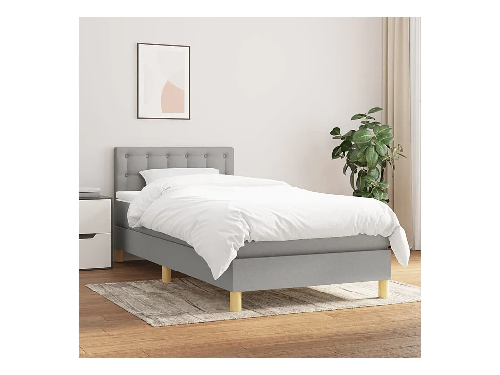 Ensemble complet boxspring - 90x200 cm + sommier tapissier + matelas Gris clair Tissu SRGW80727