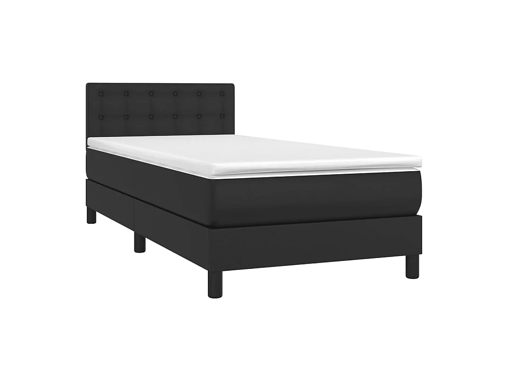 Ensemble complet boxspring - 90x200 cm + sommier tapissier + matelas Noir Similicuir SRGW20184