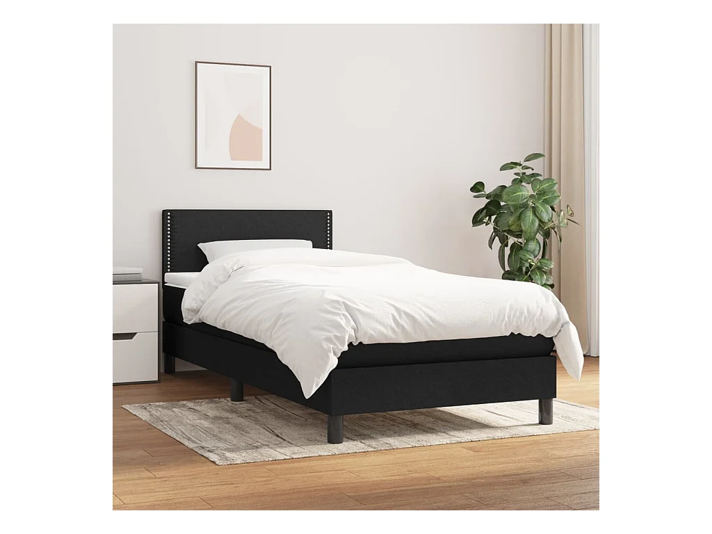 Ensemble complet boxspring - 90x200 cm + sommier tapissier + matelas Noir Tissu SRGW65360