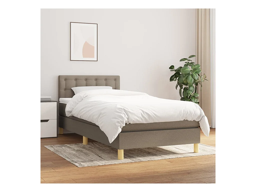 Ensemble complet boxspring - 90x200 cm + sommier tapissier + matelas Taupe Tissu SRGW30577