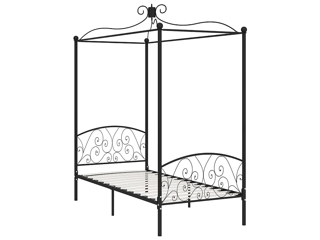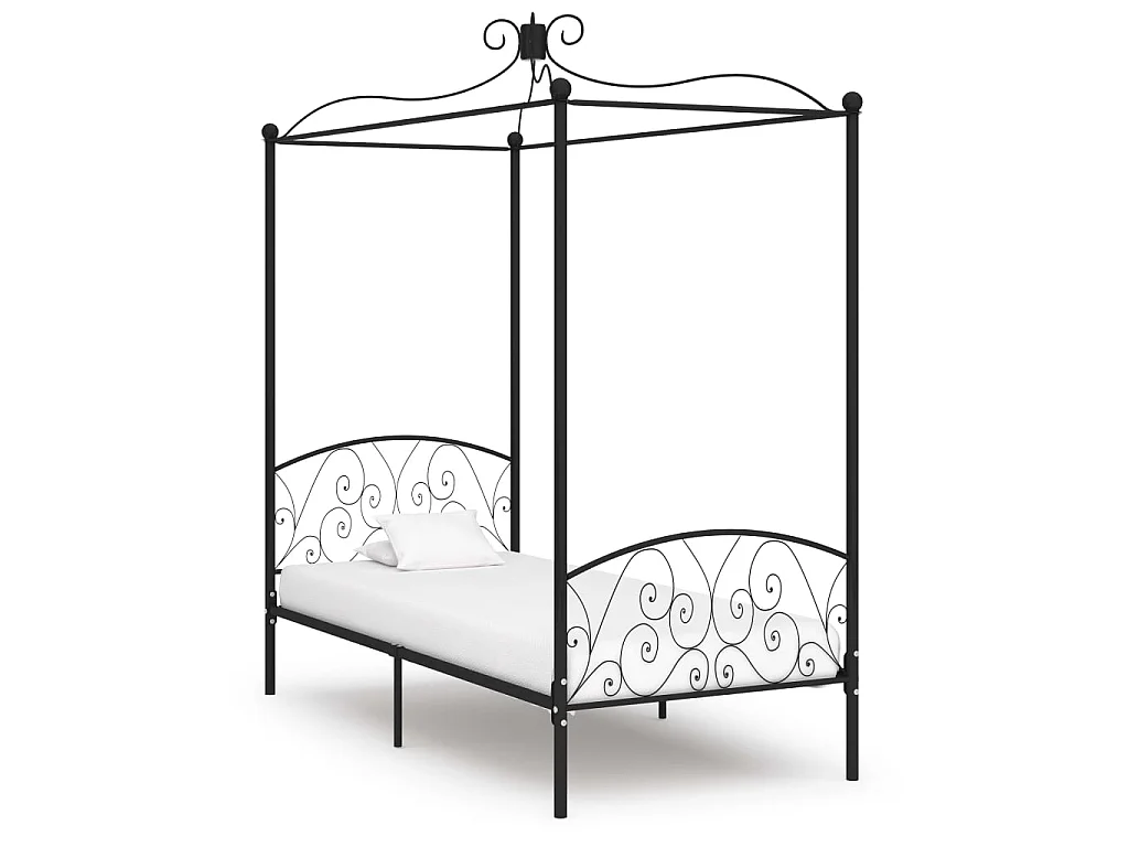 Lit à baldaquin-100 x 200 cm Noir Métal JKF170565