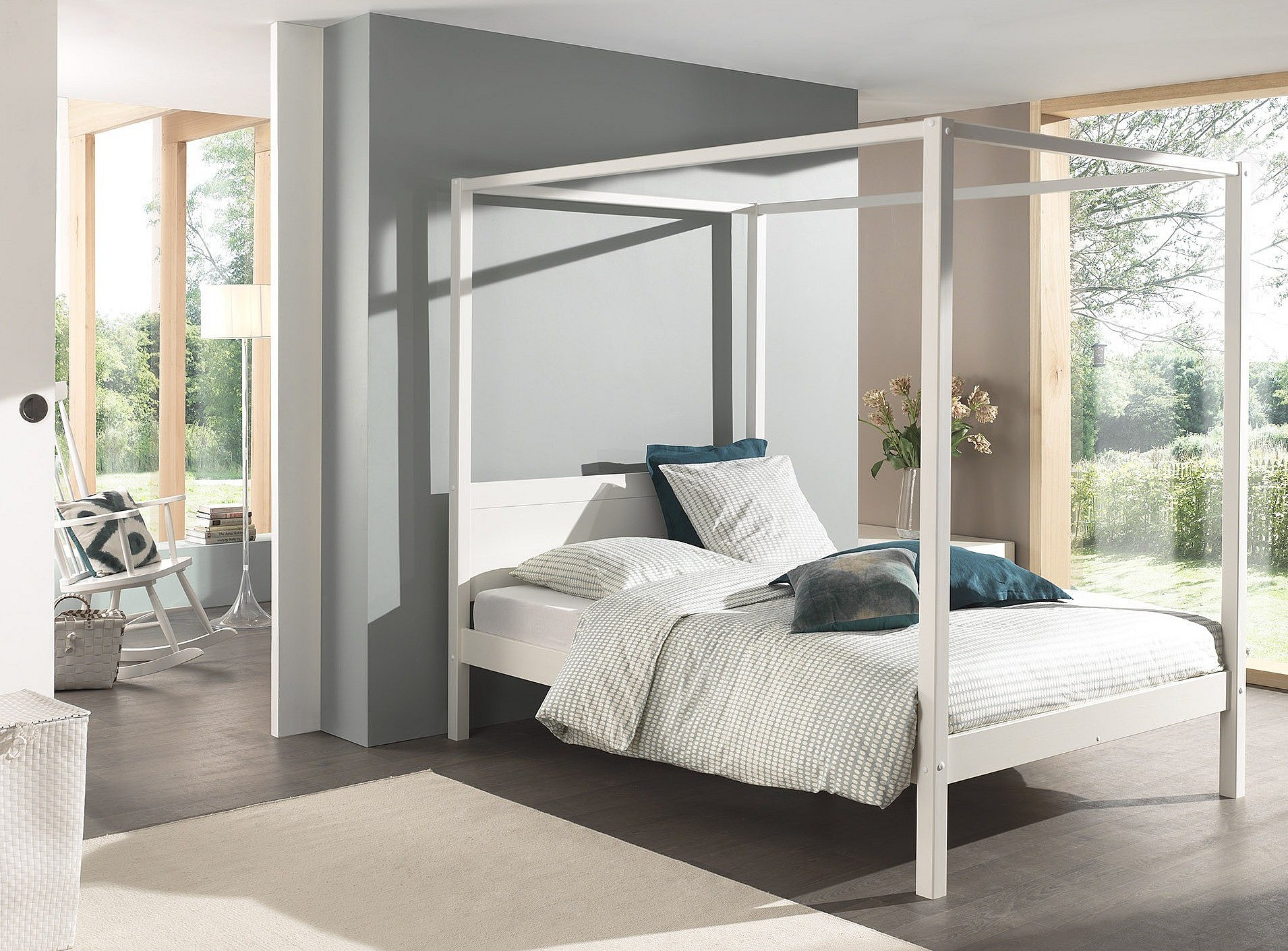 Lit à Baldaquin Bois Massif "Pino" 140x200cm Blanc