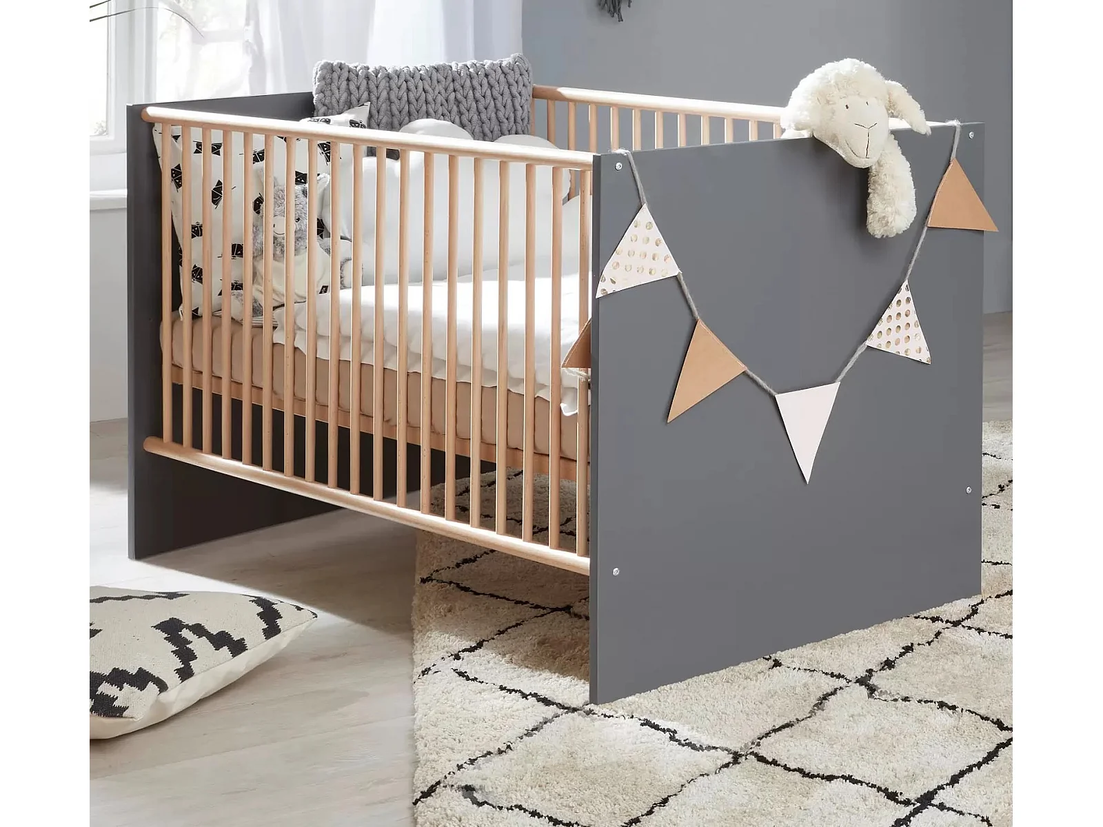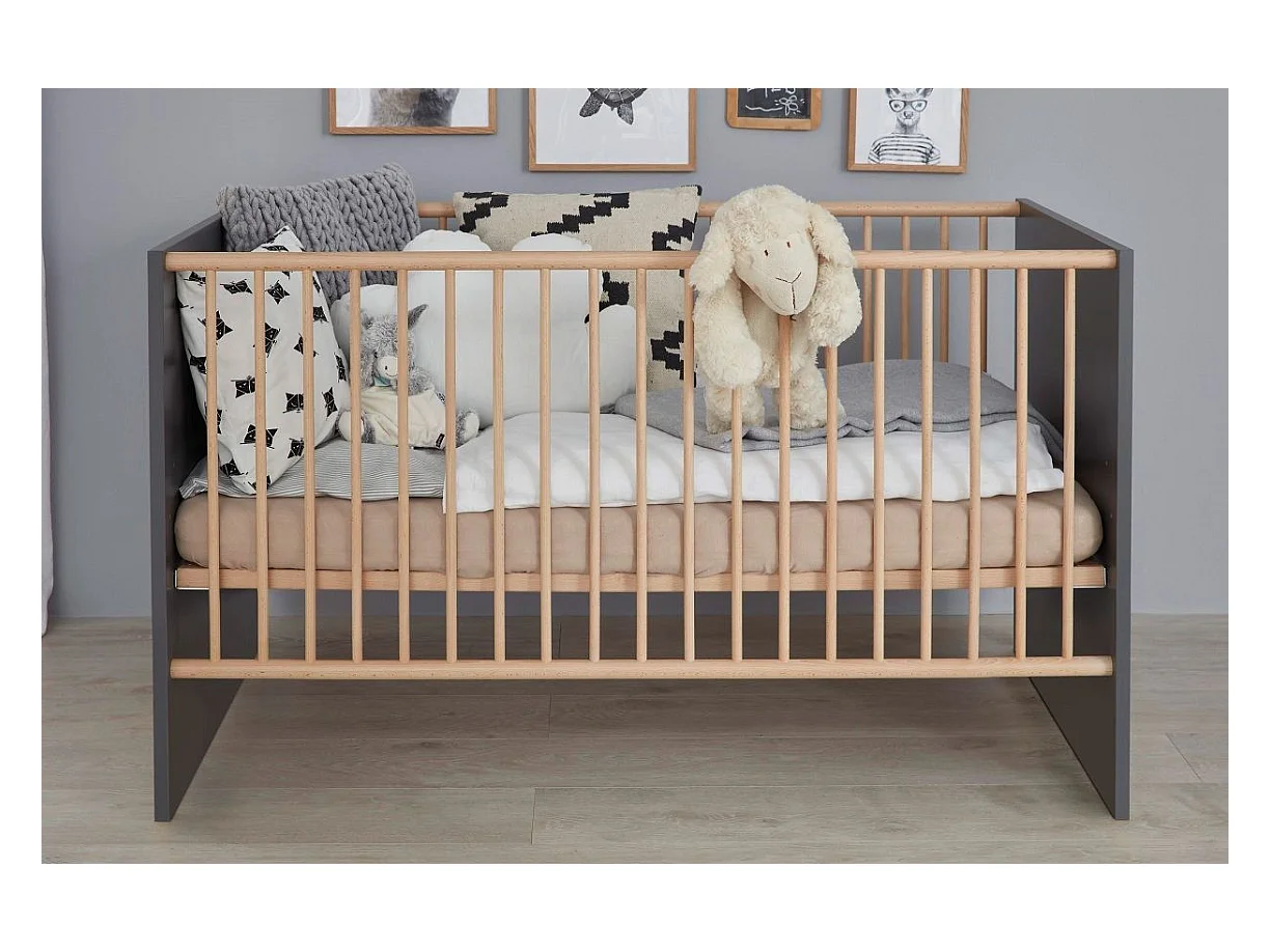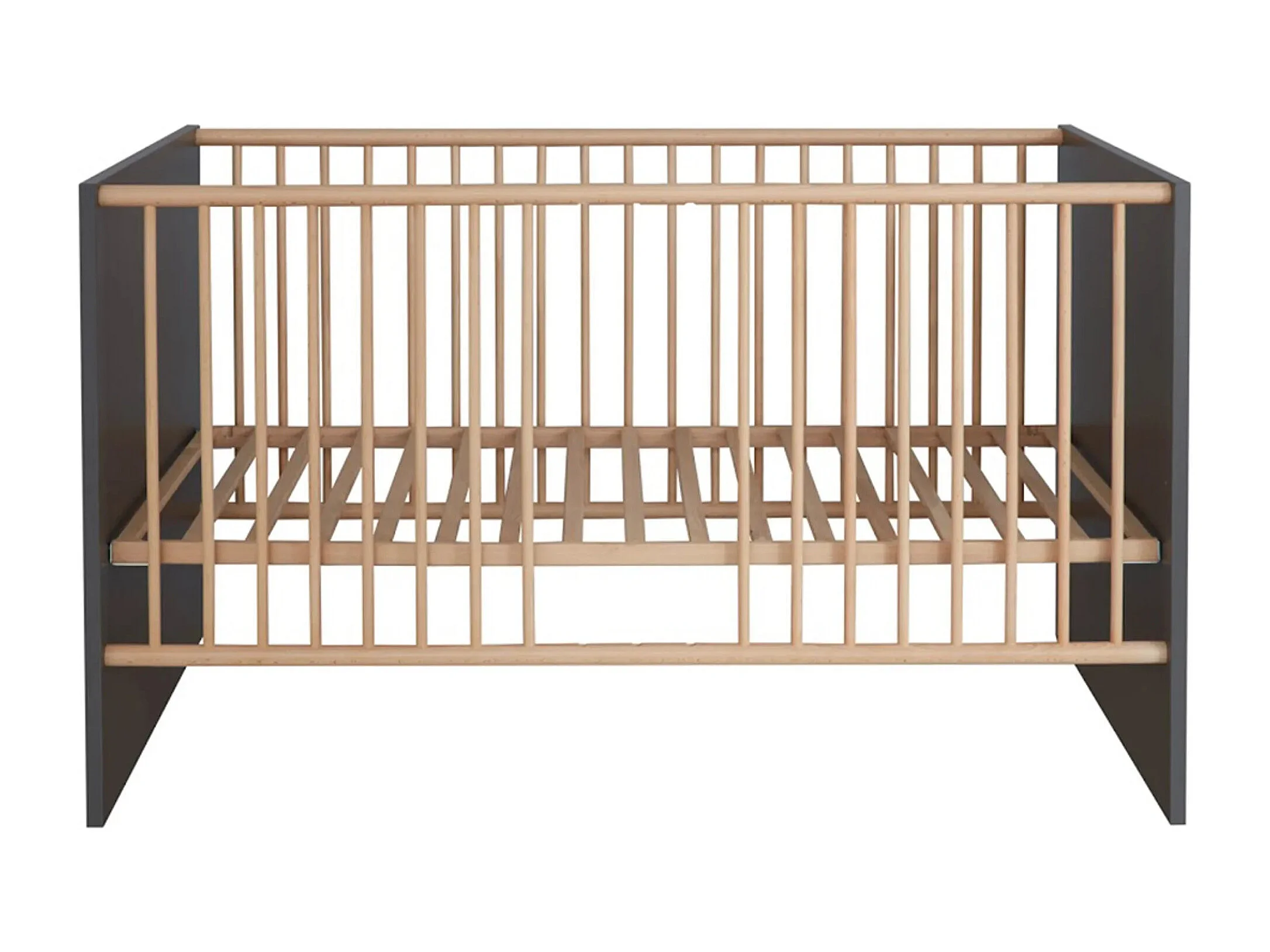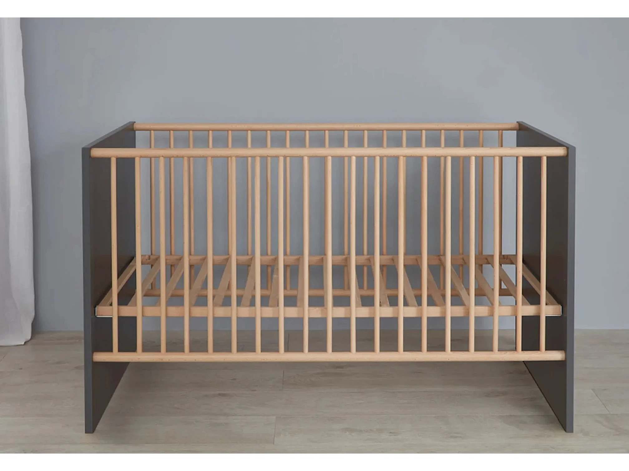 Lit à barreaux 70x140 mélaminé gris mat et bois clair Mathys