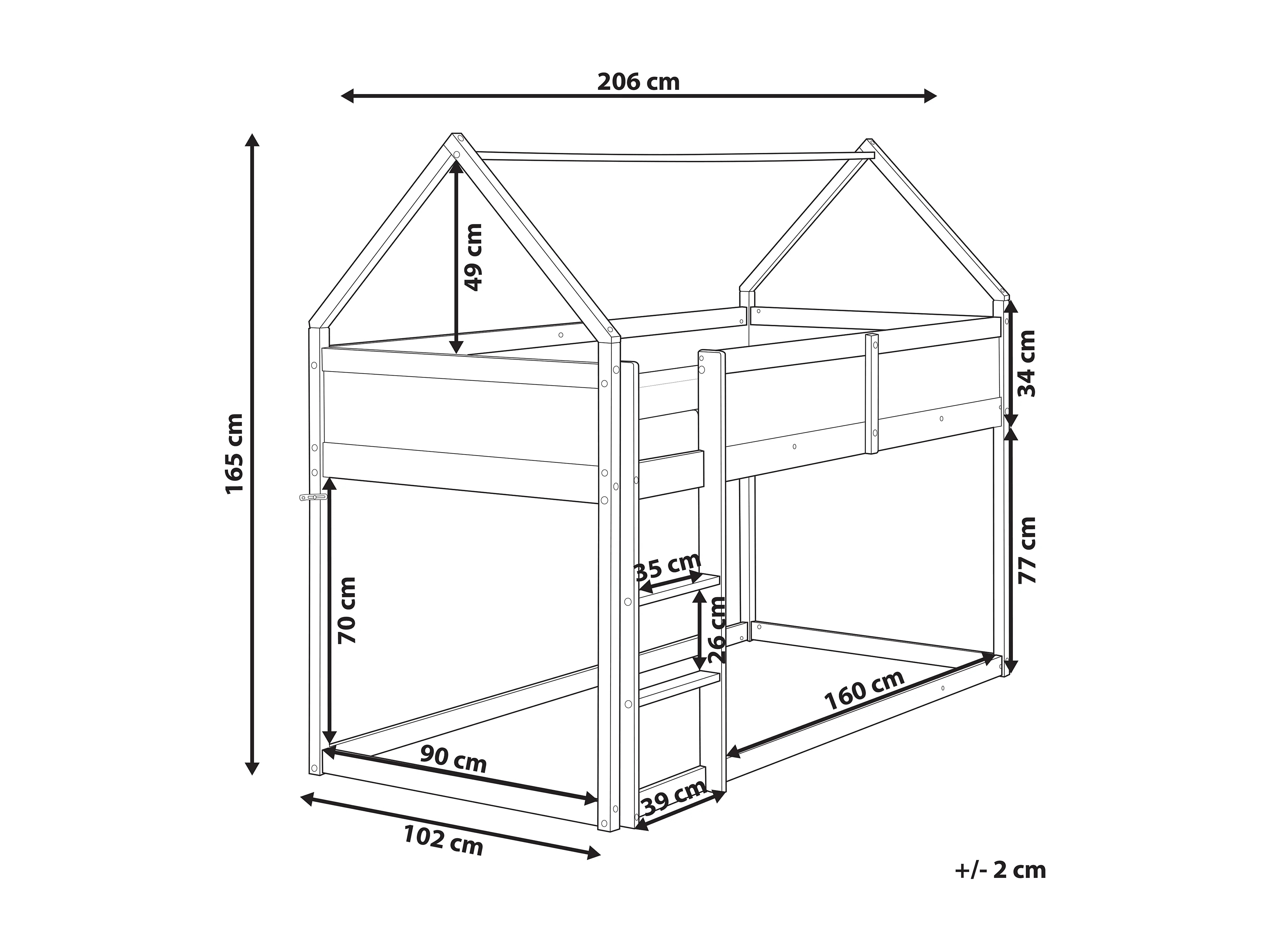 Lit à mit-hauteur Maison Bois de pin DIENNE 90 x 200 cm Gris