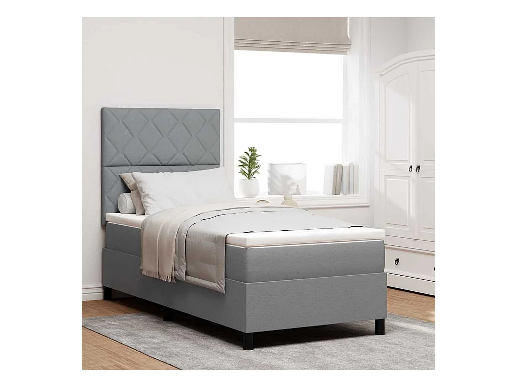 Lit à ressorts avec matelas Gris clair 100 x 200 cm tissu