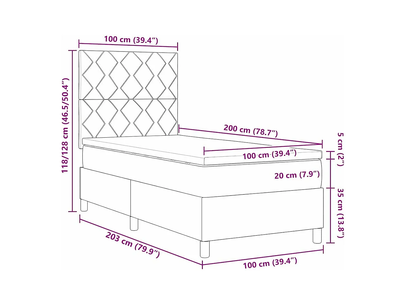 Lit à ressorts Manuel Gris foncé et blanc 203 x 100 x 88 cm