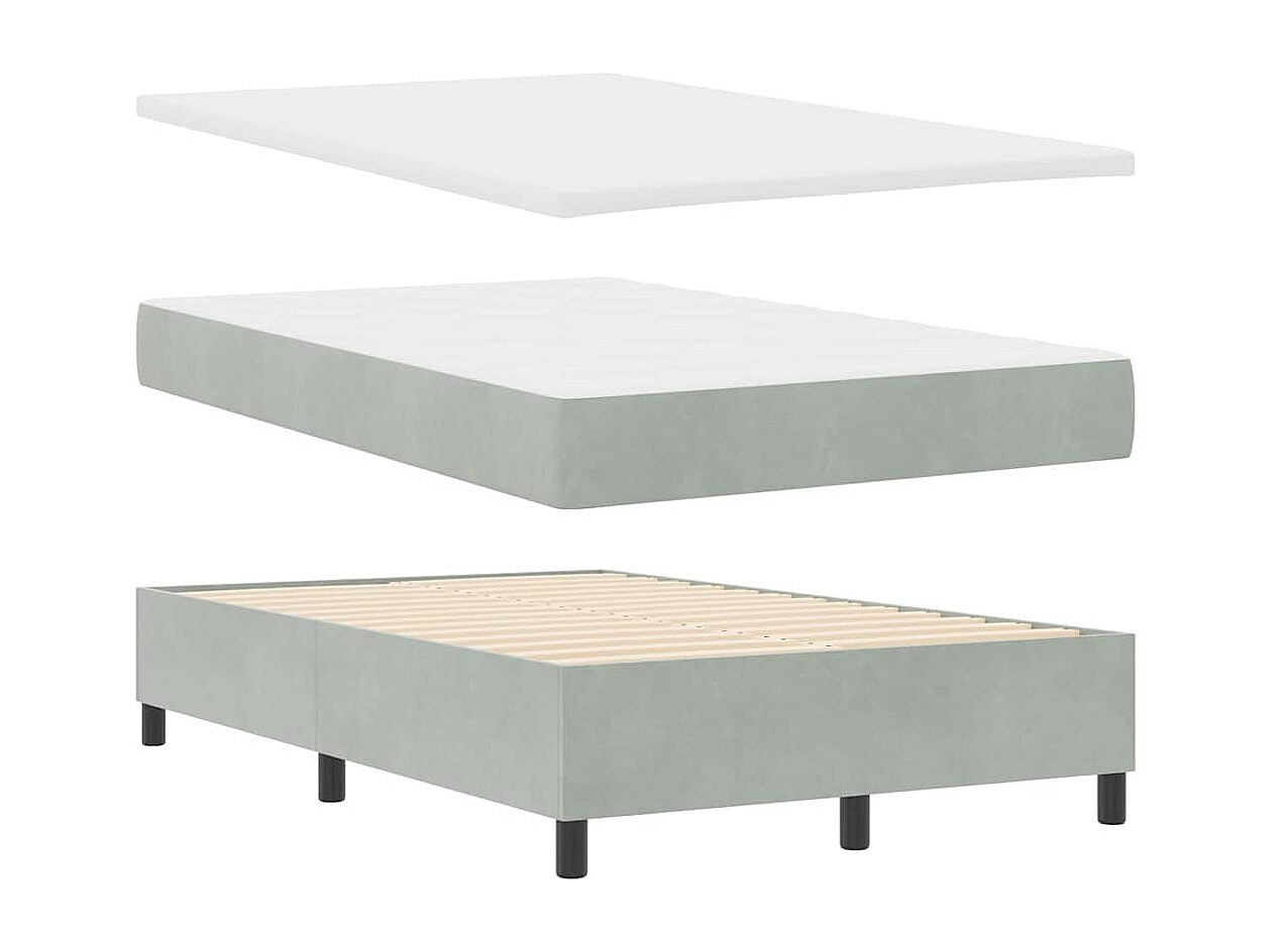 Lit à ressorts avec matelas Gris clair 120 x 190 cm Velours