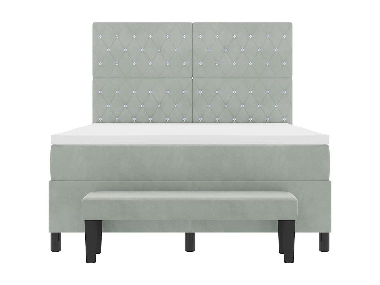 Lit à ressorts avec matelas Gris clair 160 x 200 cm Velours
