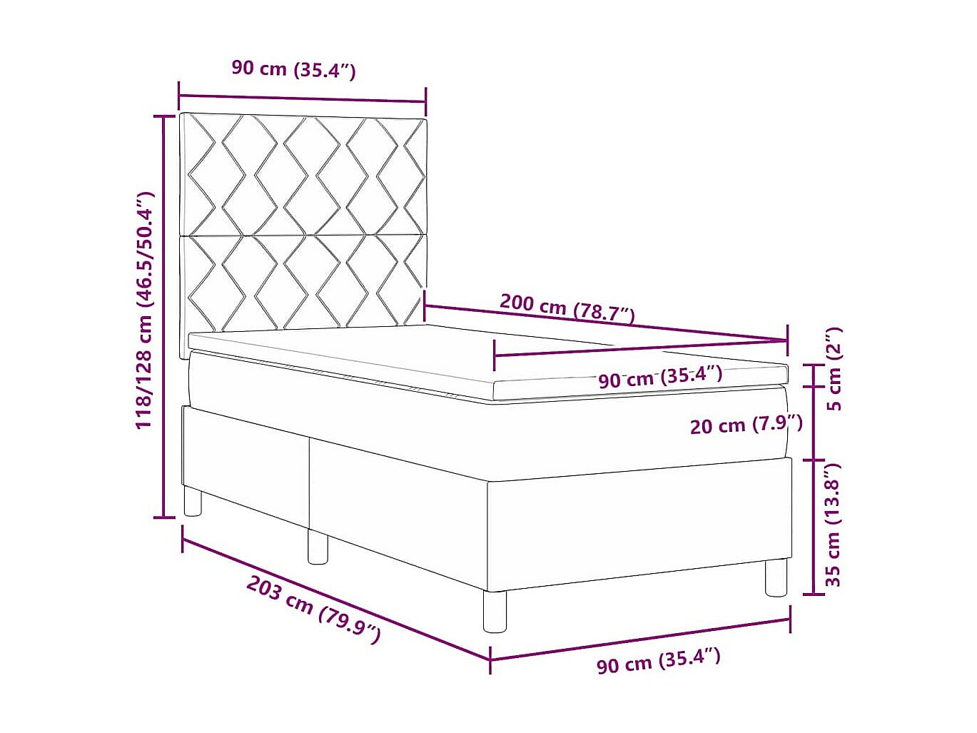 Lit boxspring avec matelas Gris foncé 90 x 200 cm tissu