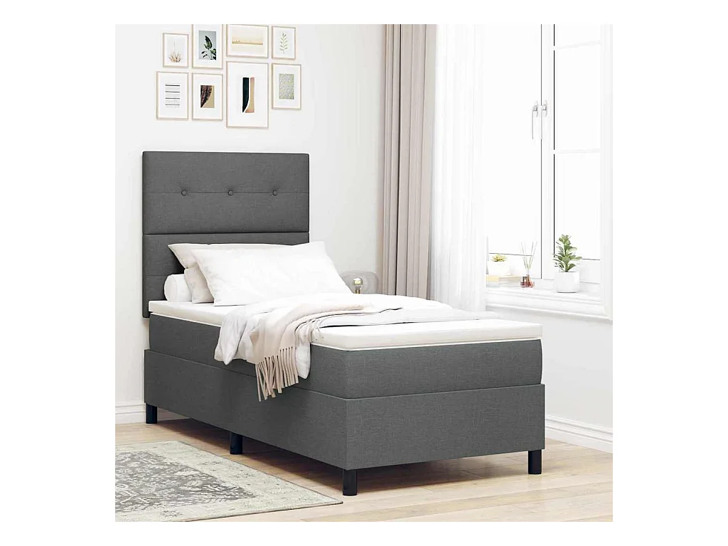 Lit boxspring avec matelas Gris foncé 100 x 200 cm tissu