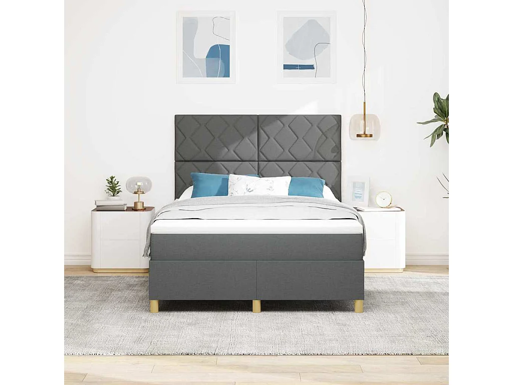 Lit à ressorts avec tête de lit Gris foncé 140 x 200 cm tissu
