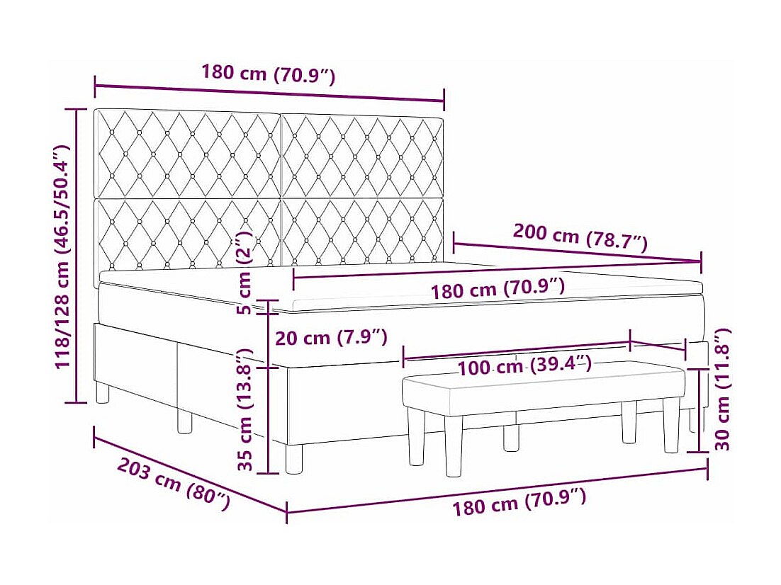 Cadre de lit ottoman et matelas gris clair 180x200cm tissu