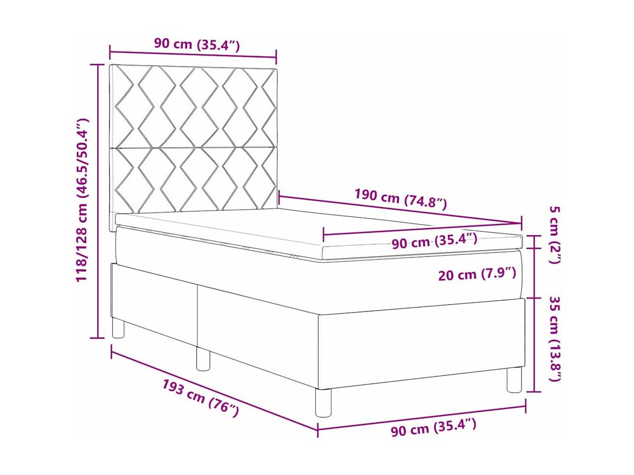 Lit à ressorts avec matelas Marron foncé 90 x 190 cm tissu
