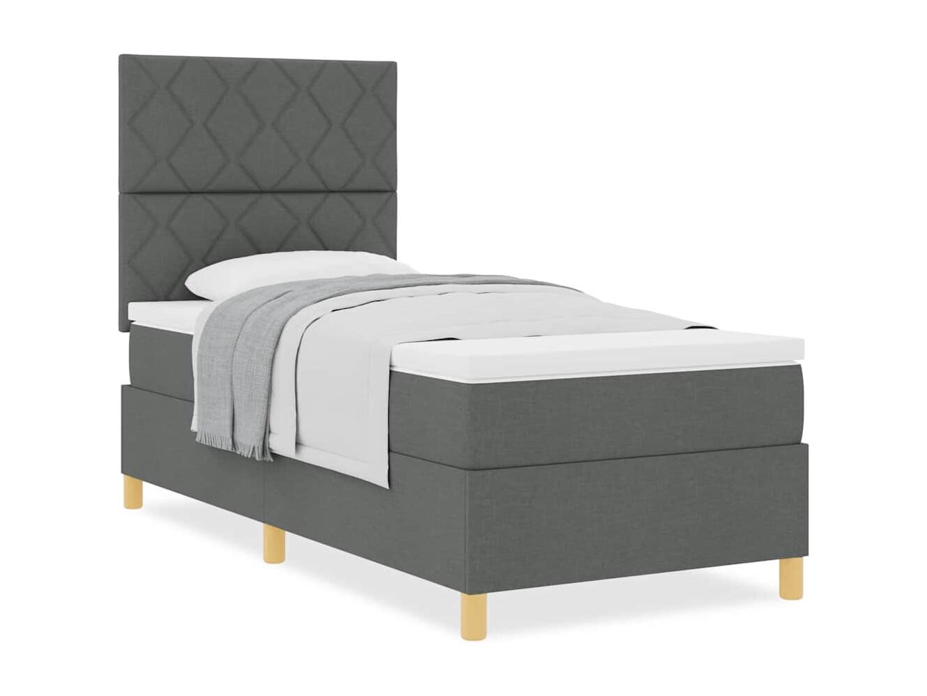 Lit à ressorts avec matelas Gris foncé 90 x 190 cm tissu