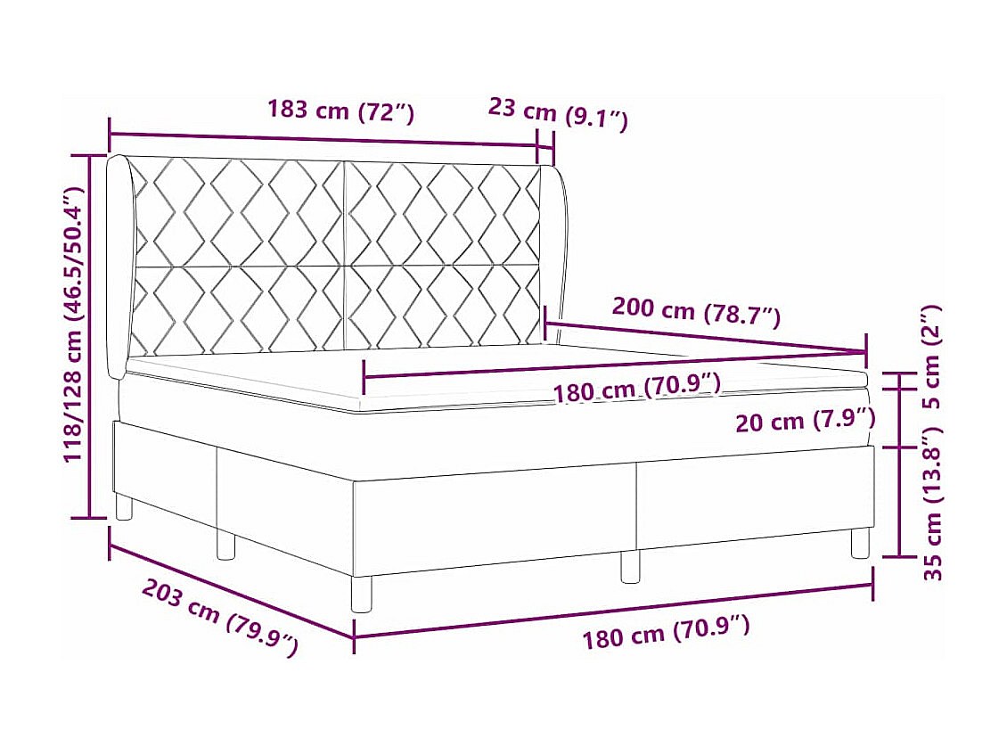 Lit boxspring avec matelas Marron foncé 180 x 200 cm tissu
