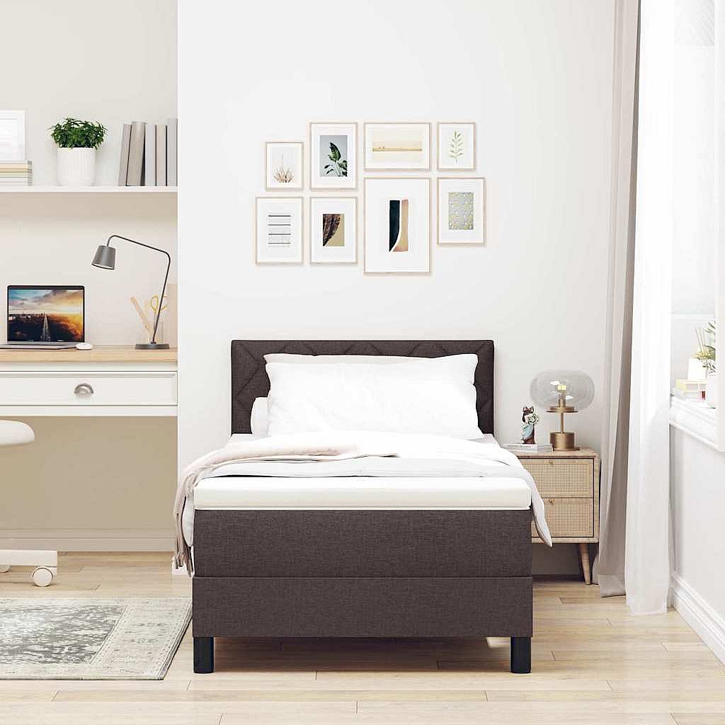 Lit à ressorts avec matelas Marron foncé 90 x 200 cm tissu