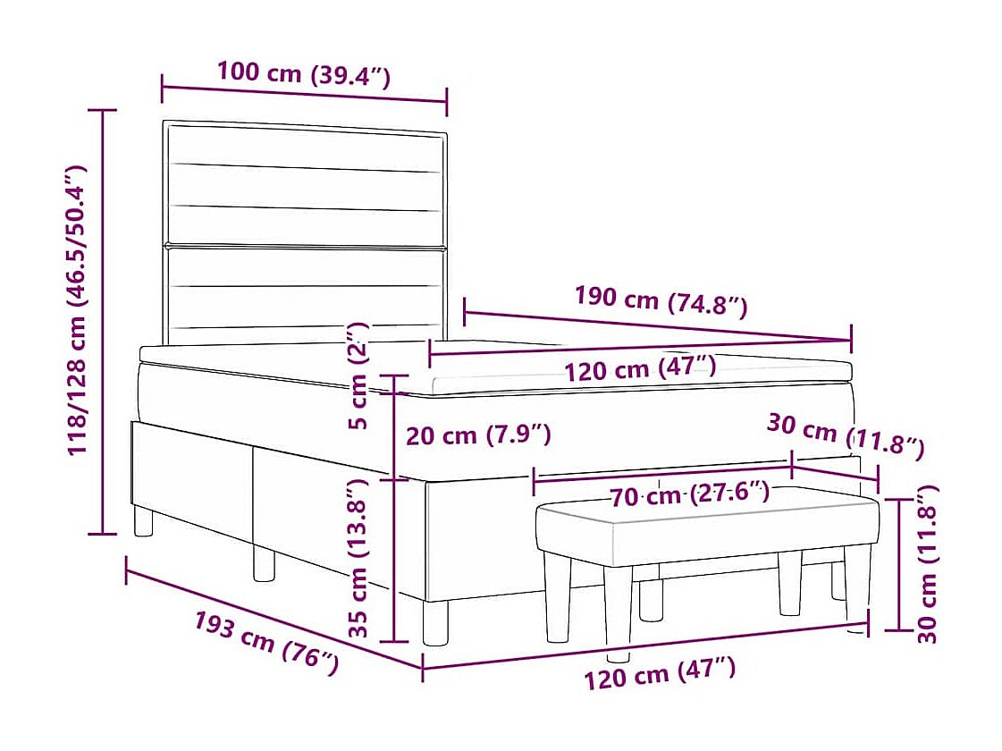 Lit boxspring avec matelas avec matelas Noir 120 x 190 cm tissu