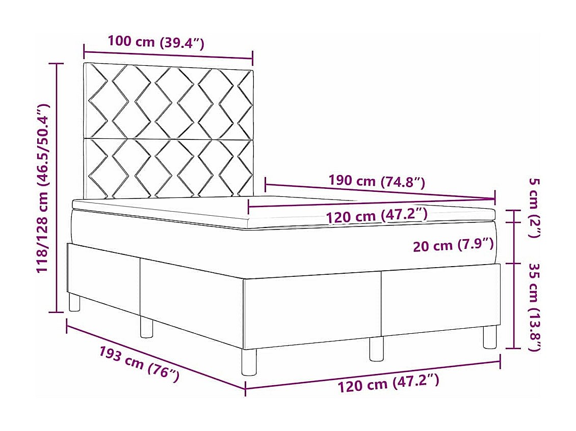 Lit boxspring avec matelas avec matelas Noir 120 x 190 cm tissu
