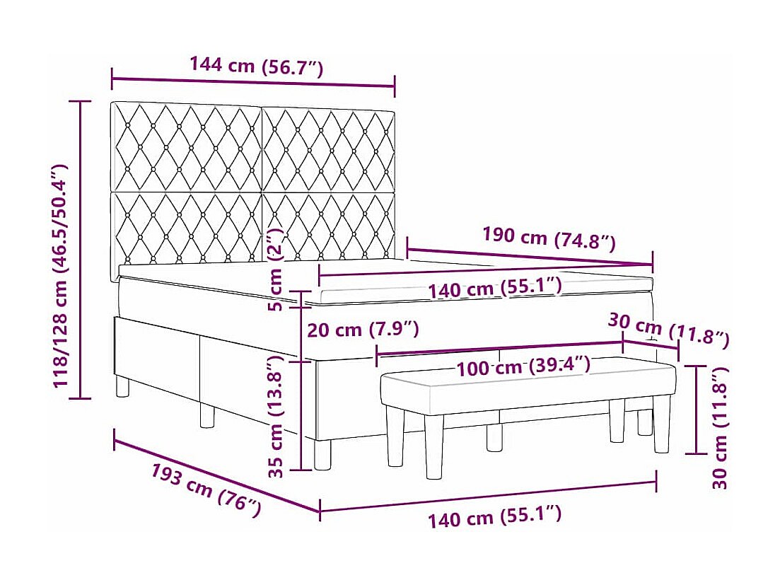 Cadre de lit ottoman sans matelas noir 140x190 cm tissu