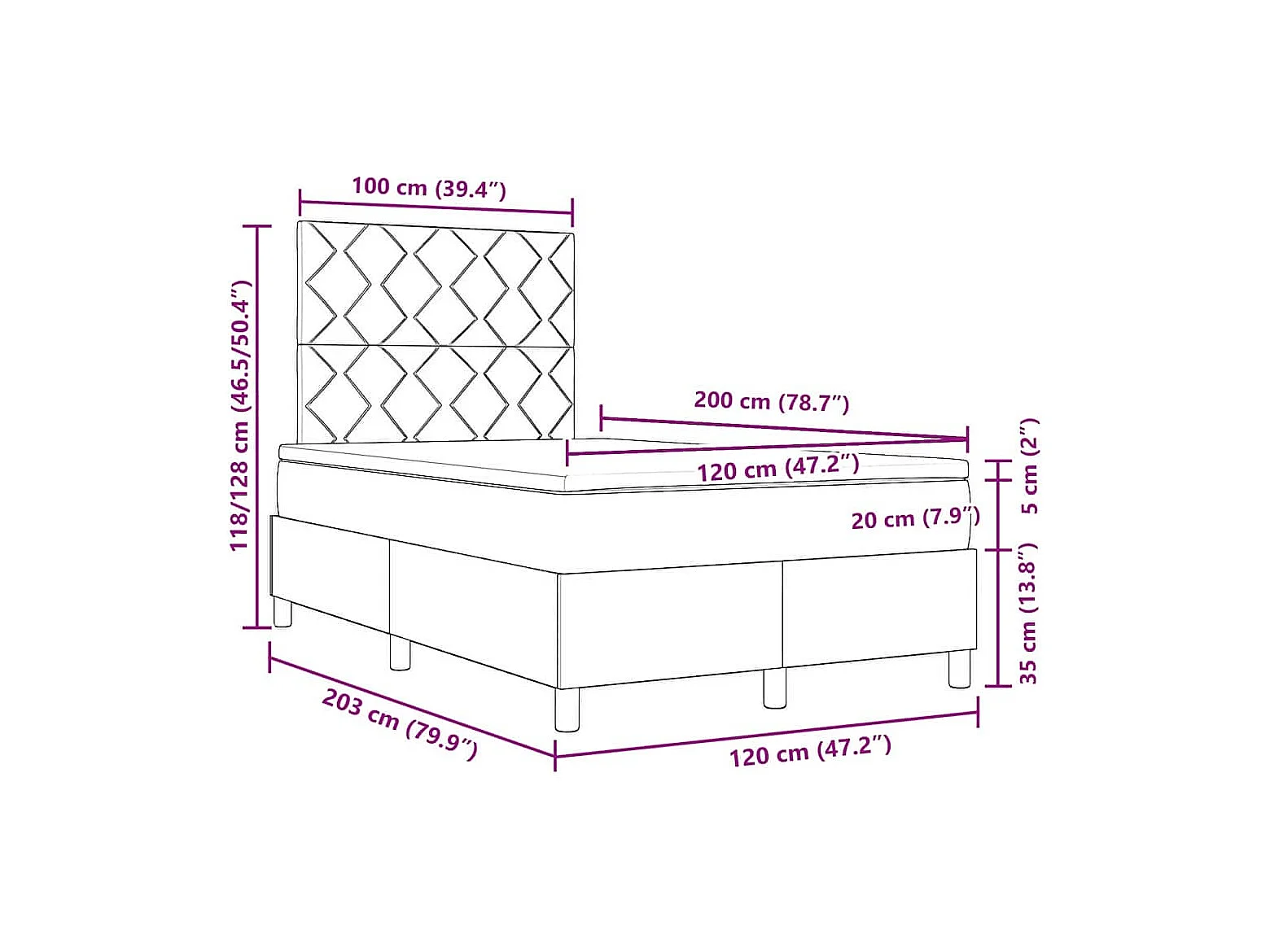 Lit boxspring avec matelas Gris foncé 120 x 200 cm tissu