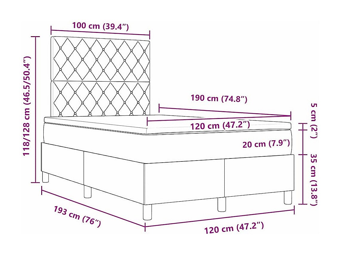Lit à ressorts avec matelas Vert foncé 120 x 190 cm tissu