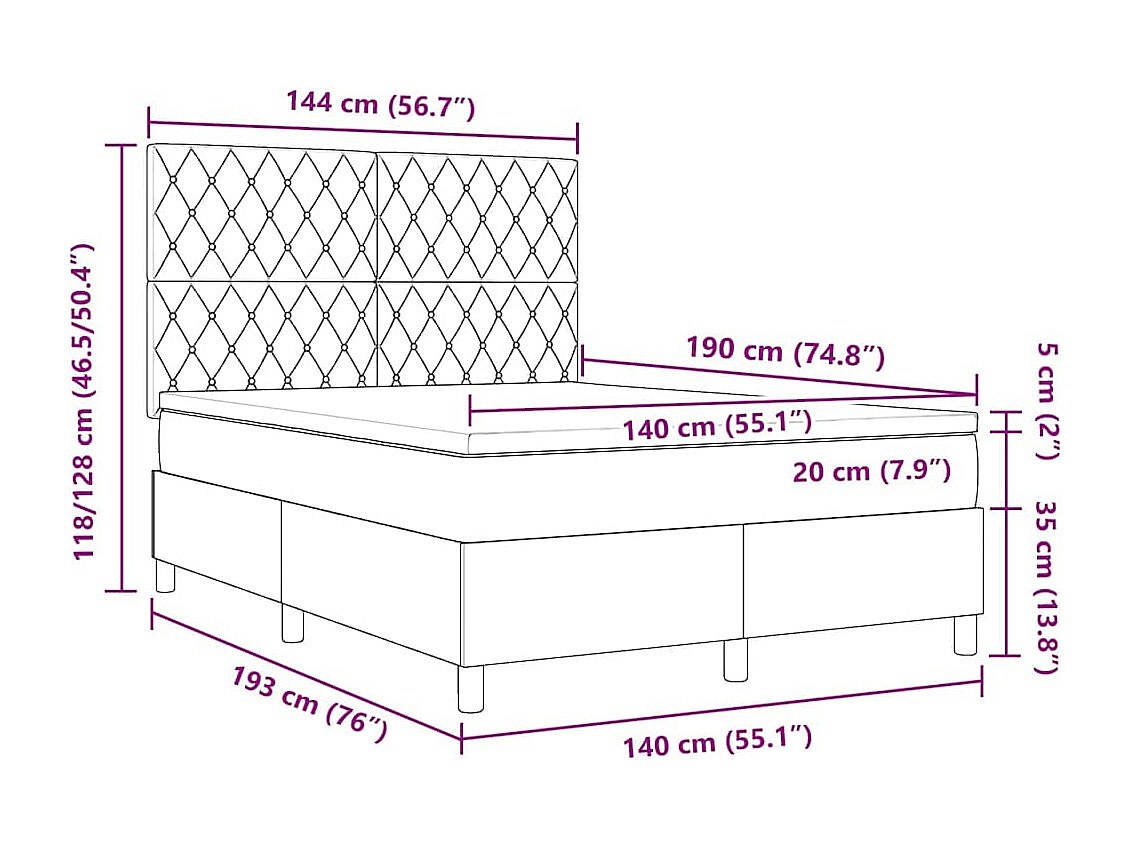 Lit à ressorts avec matelas Vert foncé 140 x 190 cm Velours