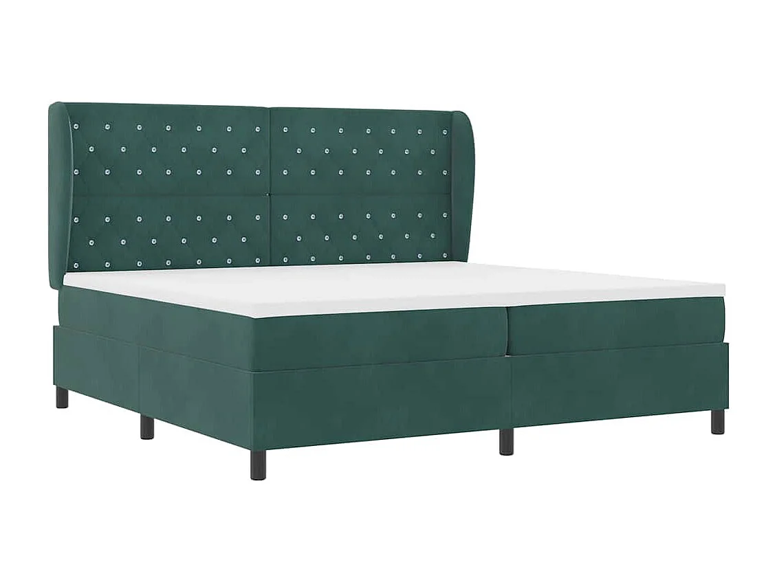 Lit à ressorts avec matelas Vert foncé 200 x 200 cm Polyester