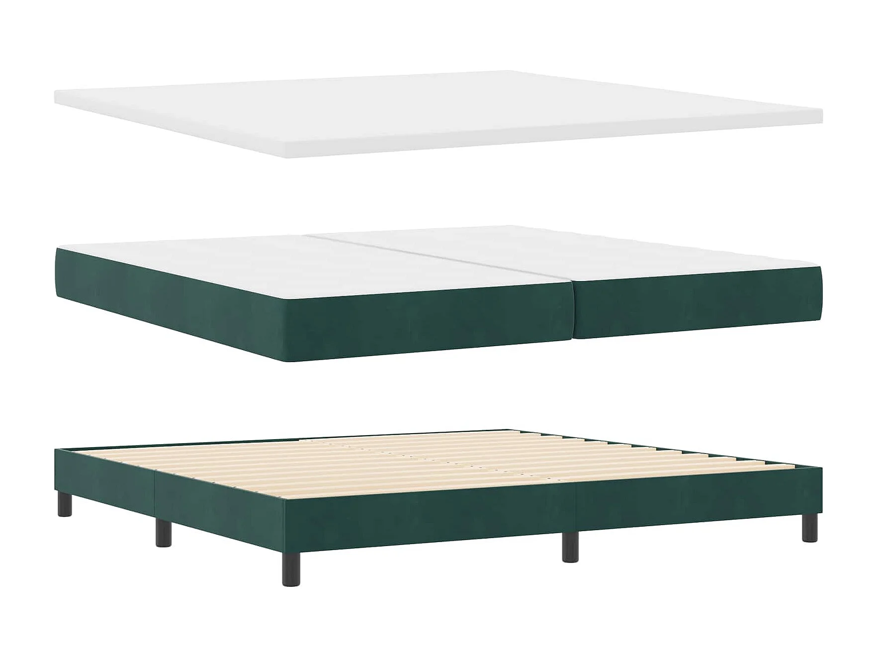 Lit à ressorts avec matelas Vert foncé 200 x 200 cm Velours