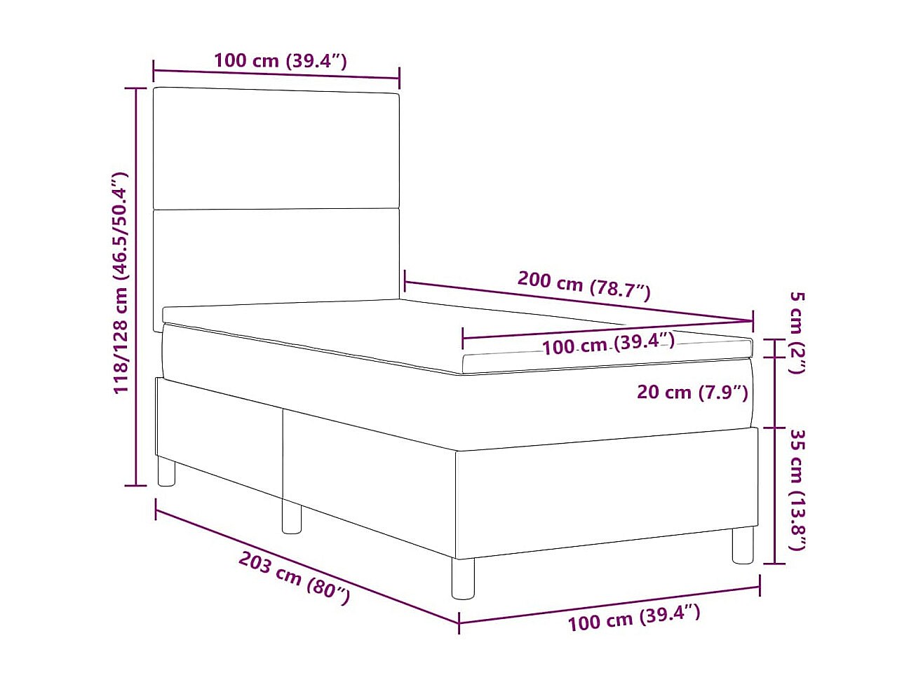 Lit à ressorts Gris clair et blanc 203 x 100 x 128 cm