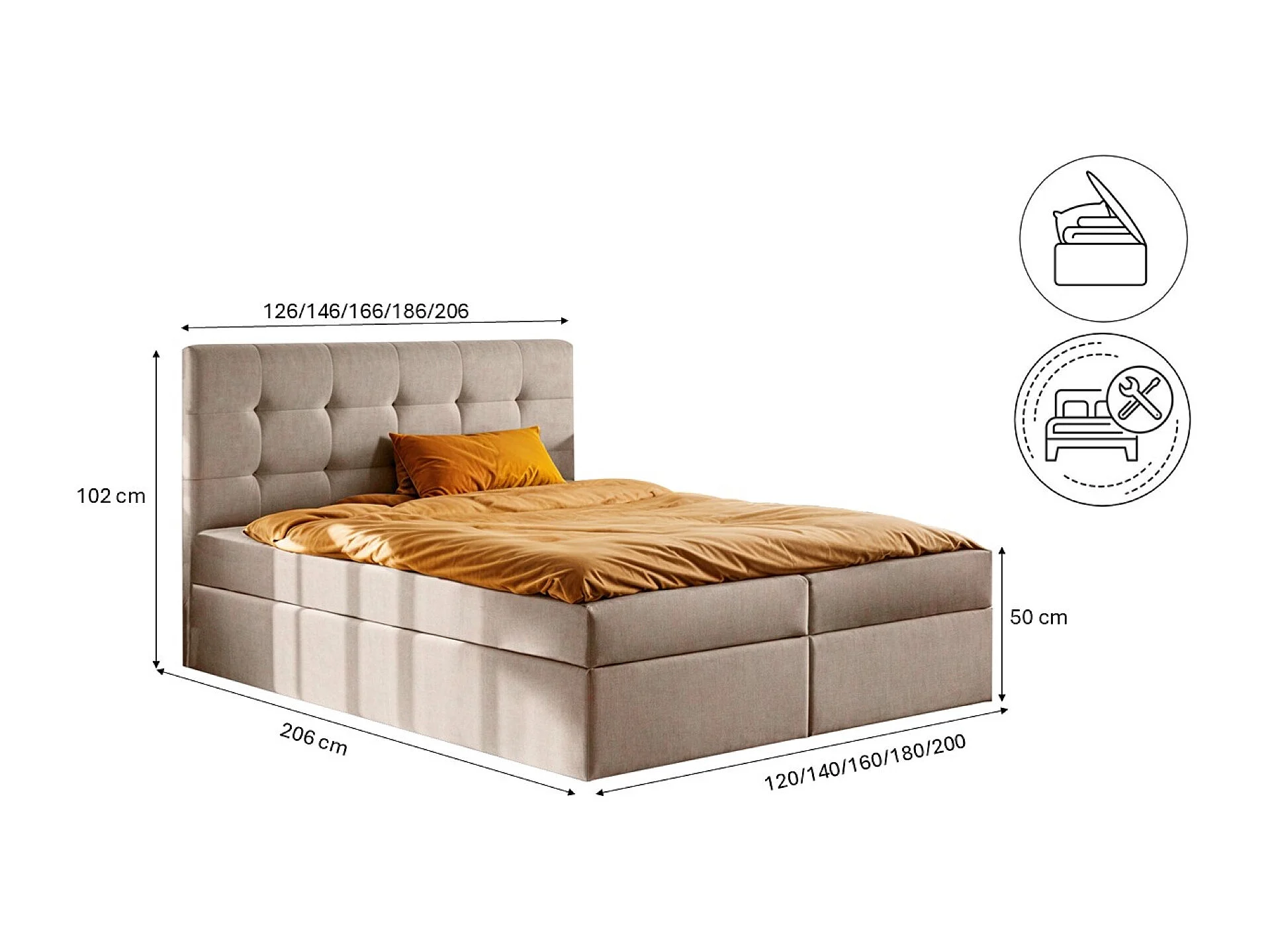 Lit boxspring avec sommier et surmatelas VIESTA tissu Poso Beige 140x200 cm H3-Bonell