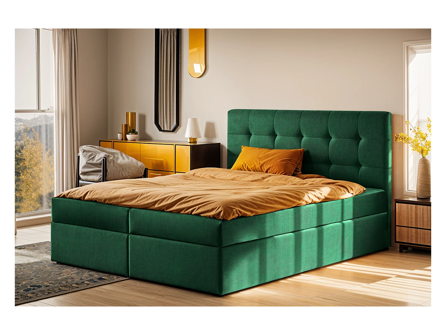 Lit boxspring 180x200 tissu vert émeraude Mador