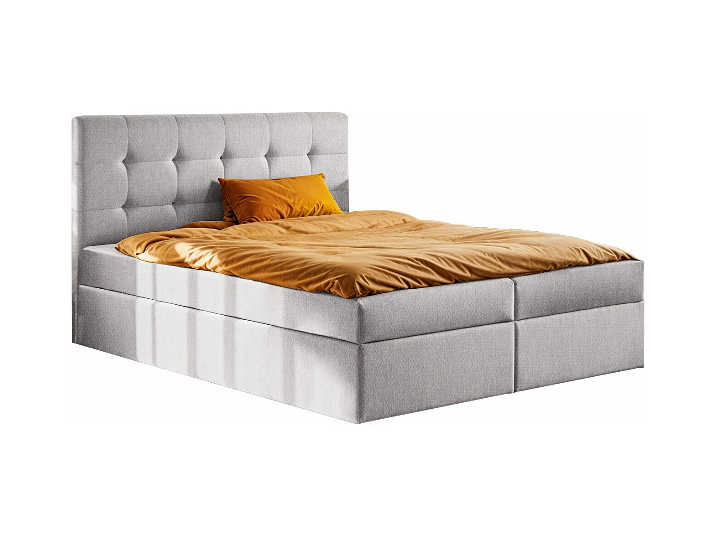 Lit à sommier tapissier avec matelas et sommier, tissu LUDANO Soro gris clair 200x200 cm H3-Bonell