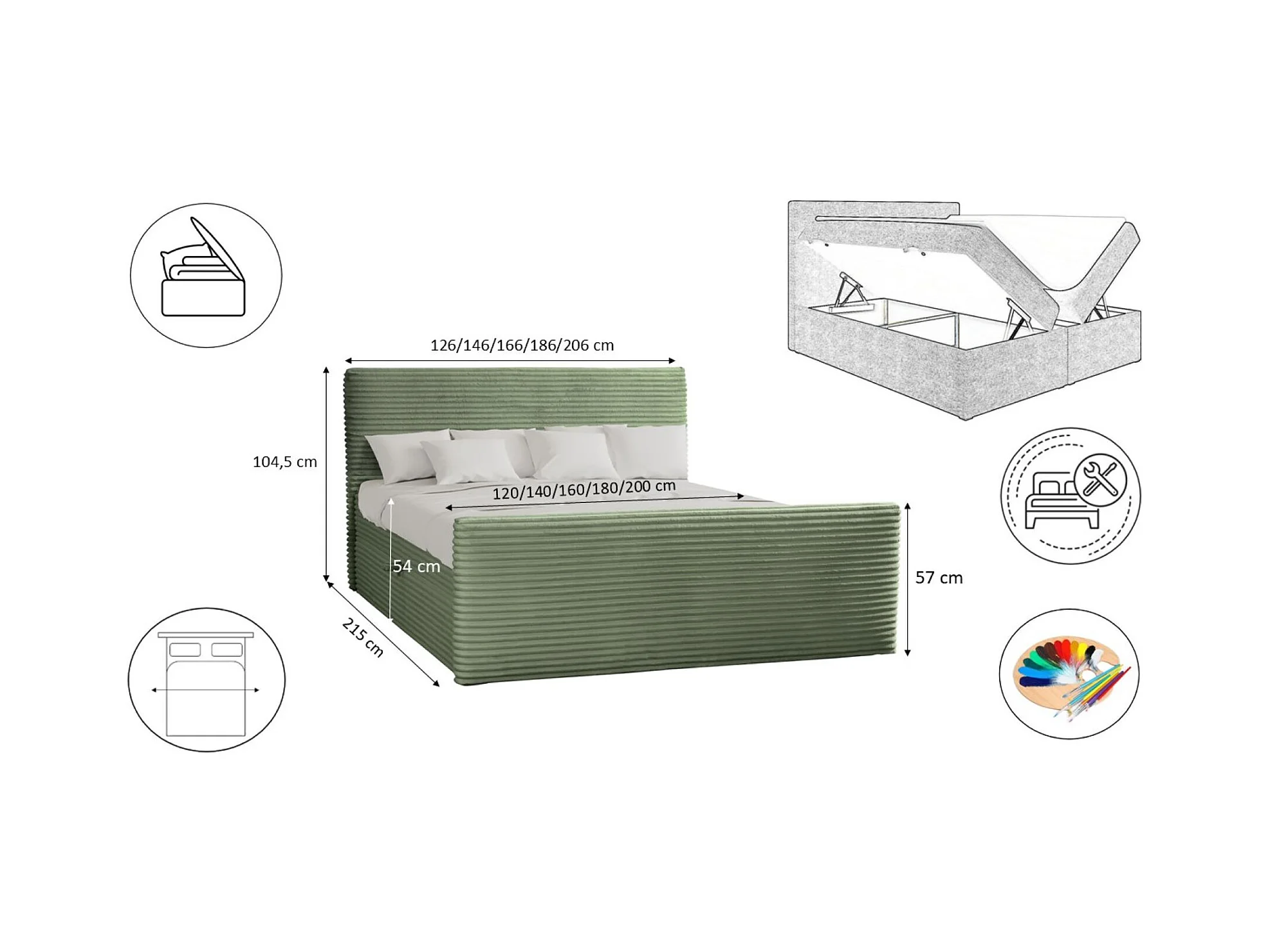 Lit boxspring 160x200 tissu doux vert anis Mador