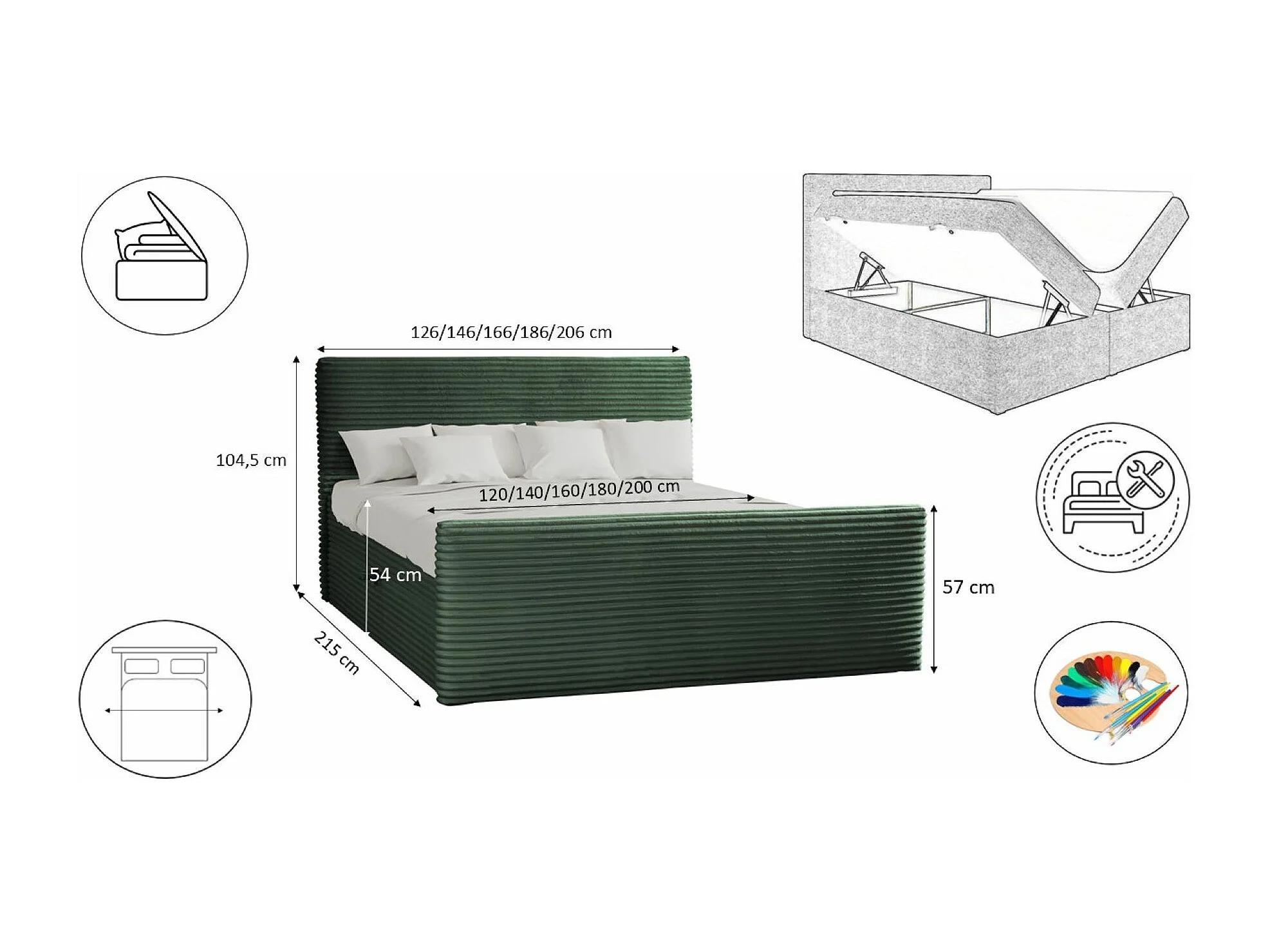 Lit boxspring électrique tissu vert avec matelas et surmatelas Arkos-140x200