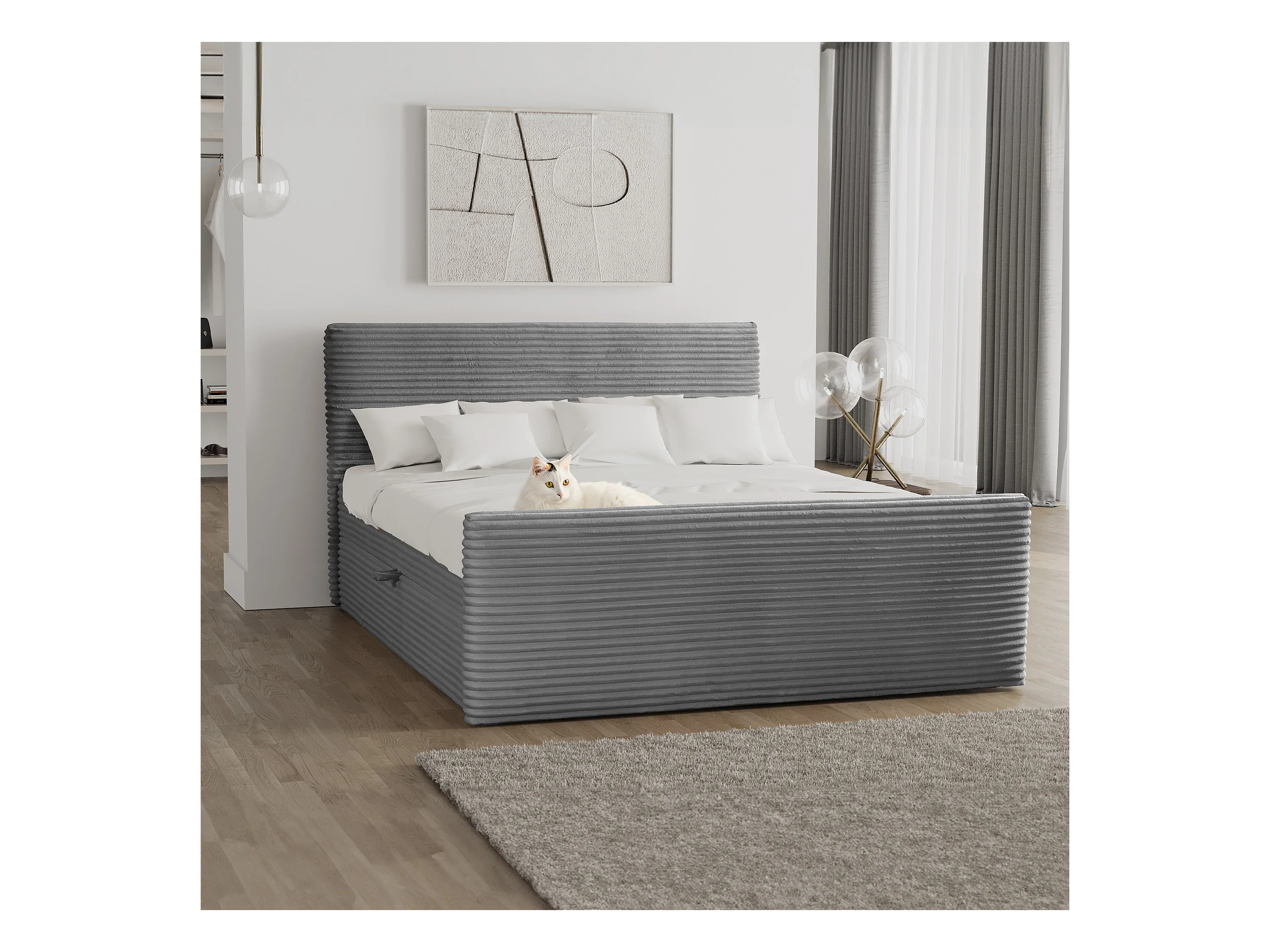 Lit à sommier tapissier avec sommier et surmatelas TRENTO tissu peluche cordon 160x200 cm gris foncé H3-Bonell