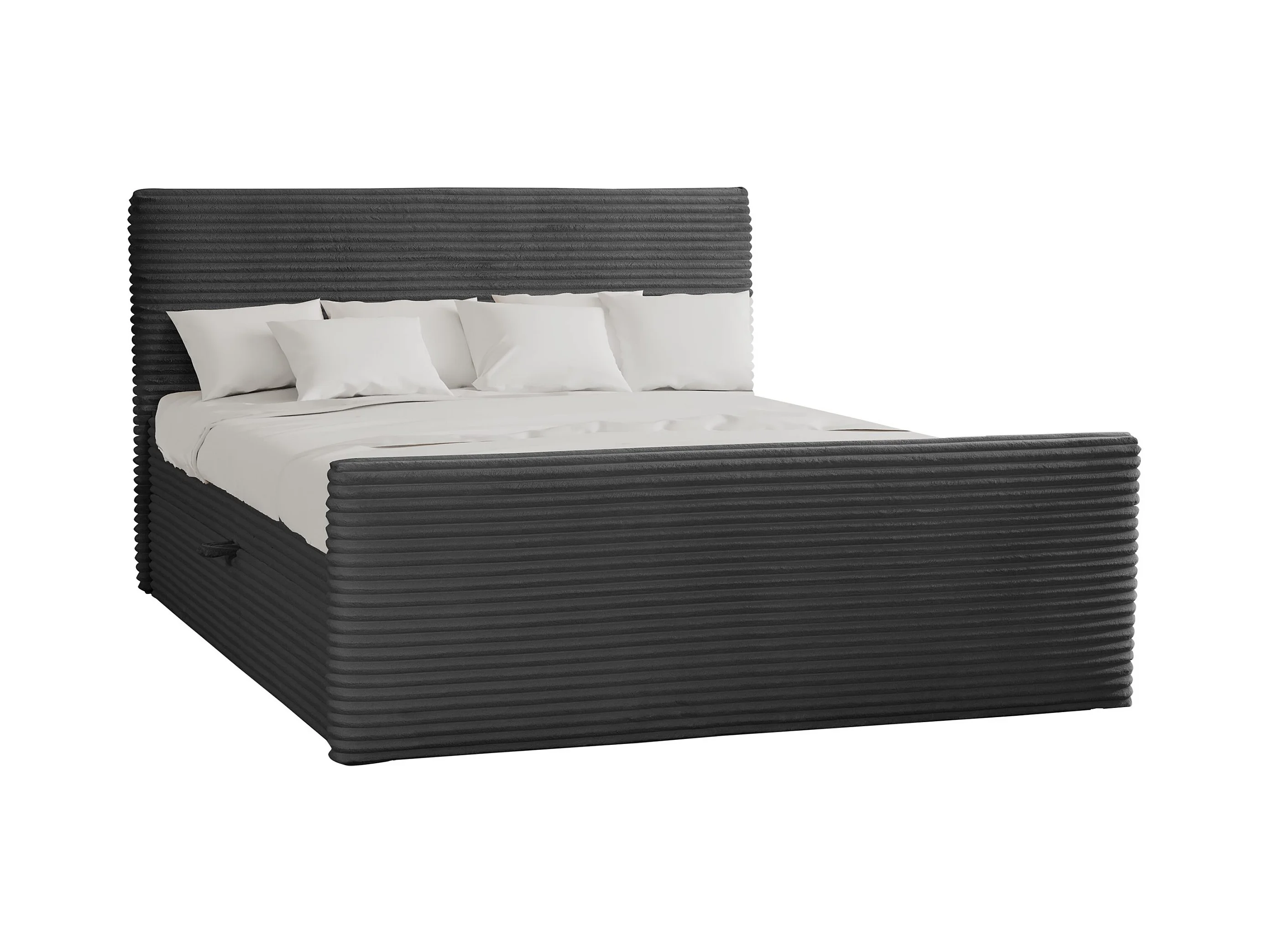 Lit à sommier tapissier avec sommier et surmatelas TRENTO tissu peluche cordon 200x200 cm graphite H3-Bonell