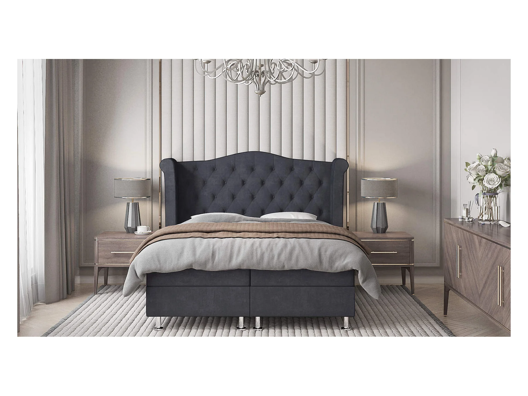 lit à sommier tapissier Saturne - 120x200cm - tissu velours - avec surmatelas de 4 cm d'épaisseur
